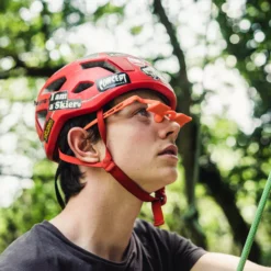 The Plasfun Evo belay glasses are back with a new design! These lightweight and resistant plastic-frame glasses now sport a sleek and sporty look. With enlarged BK7 prisms, they provide a wider and more comfortable field of vision when watching the climber.